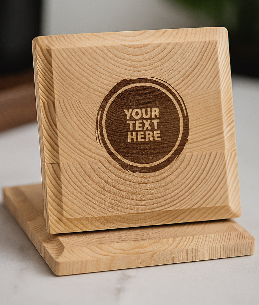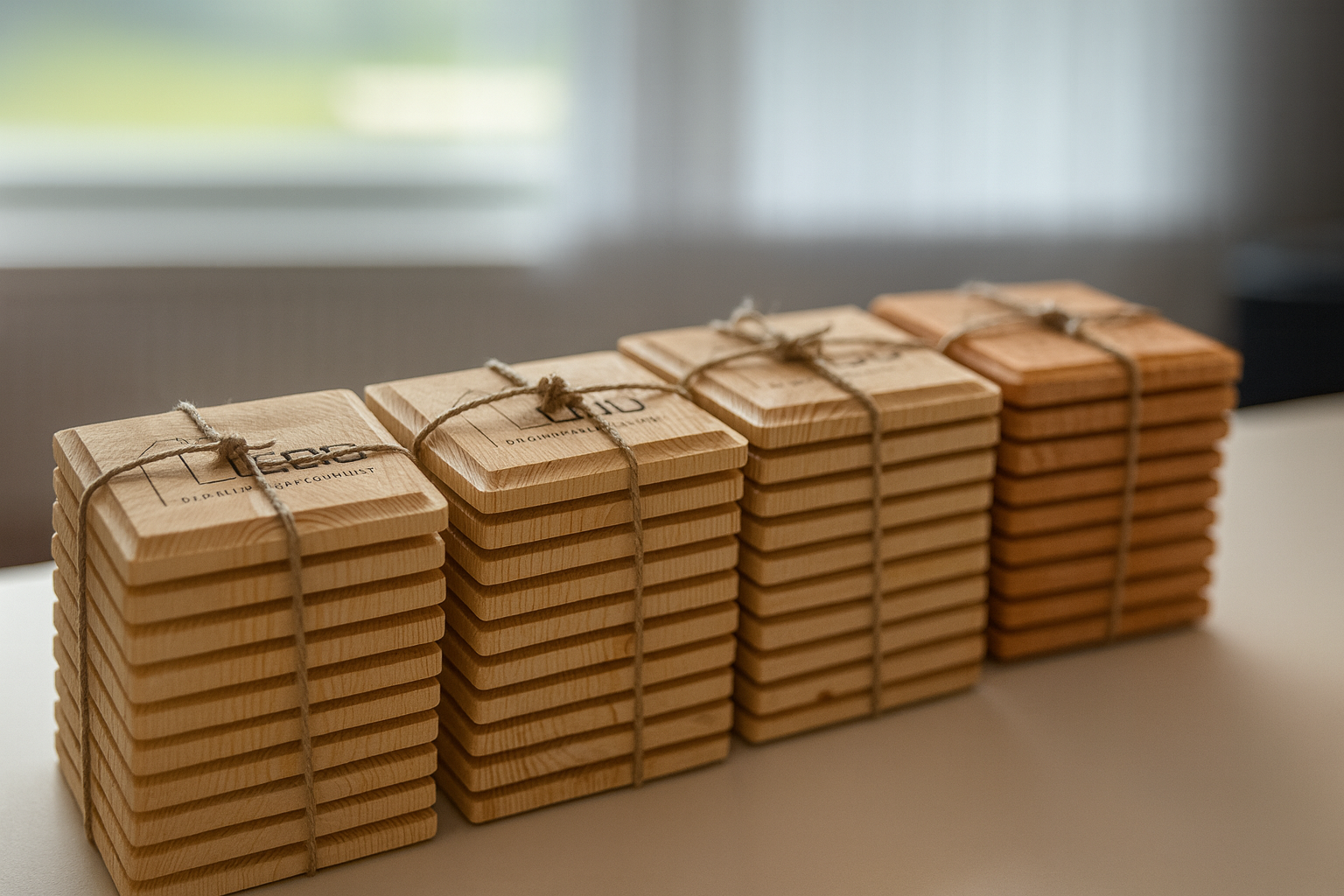 Gör intryck i mötesrum, barer och på event med ett hållbart premium-underlägg i trä.